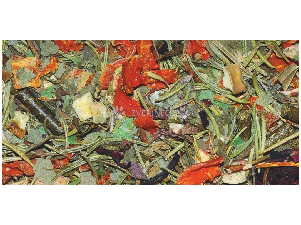Vojtěška, ostatní zelené pícniny, řasy, sušené ovoce a zelenina, rozmarýn, květ ibišku, list brusinky.