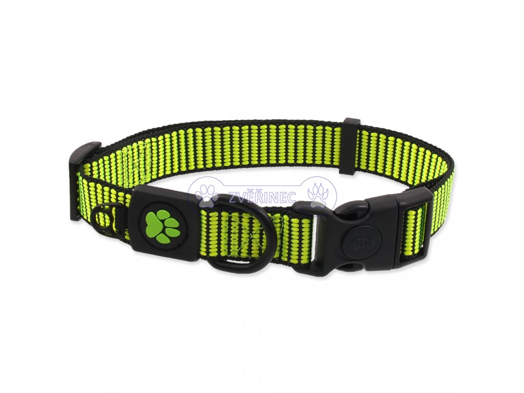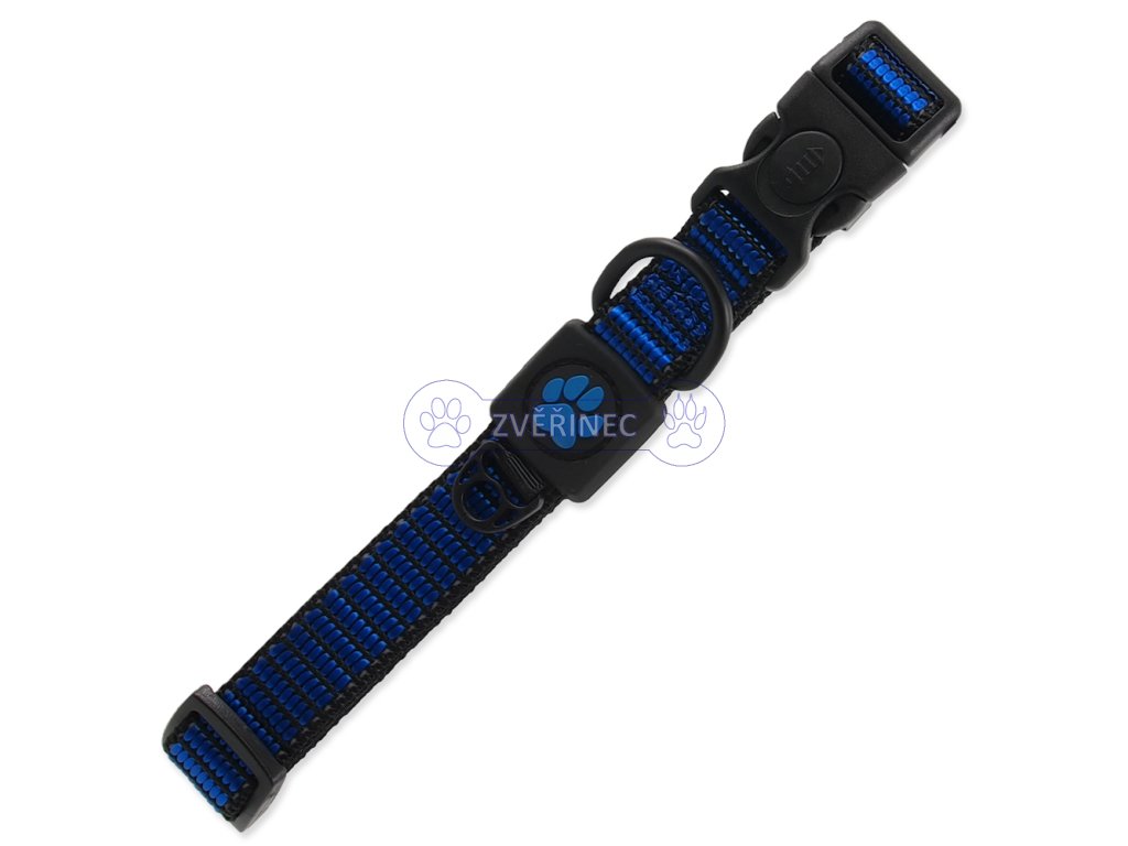 Pevný nylonový obojek s gumovou sponou k nastavení velikosti.