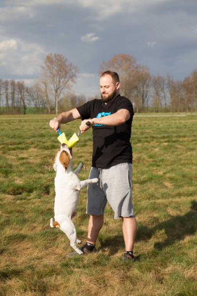 Pokud má Váš pejsek silný zákus a přiměřenou hmotnost, tak je možné si s ním i zaposilovat :-) Spíše určeno pro plemena do 20 kg. Ideálně použijte přetahovadlo s gumovými rukojetěmi, ať nemáte odřené ruce:-)