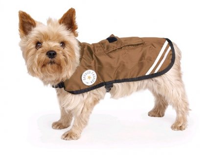 Pláštěnka Vimy se dvěma voděodolnými zipy: na krku pro připevnění vodítka, v zádové oblasti pro kombinaci s postrojem